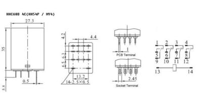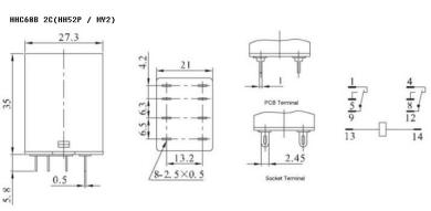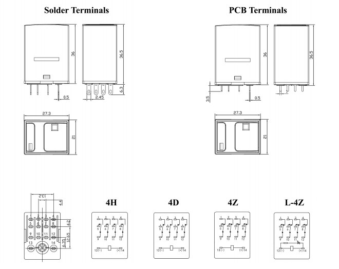 연락처 기능 | 형태 | 2Z (DPDT); 2H (DPST-NO); 2D (DPST-NC) | 4z (4pdt); 4h (4pst-no); 4d (4pst-nc) | ||||||